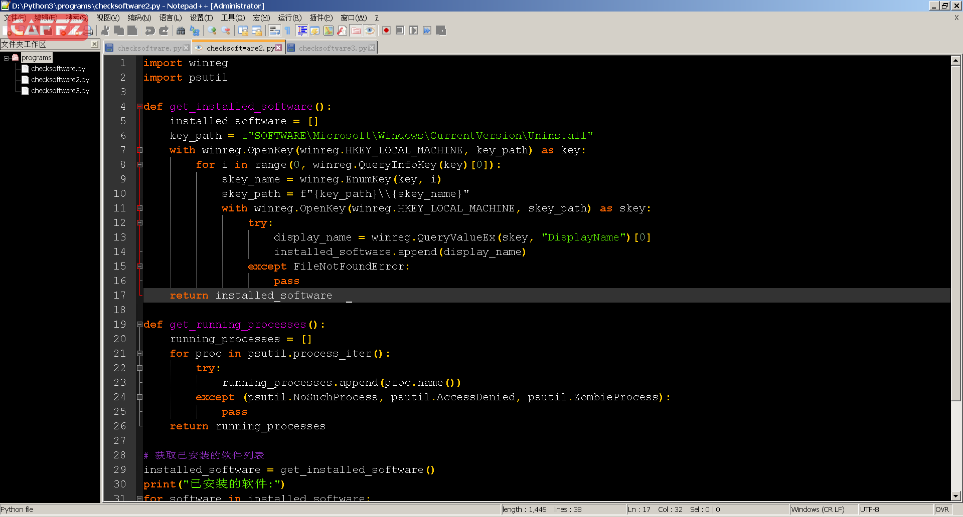 Title: python检测windows7系统已经安装的软件