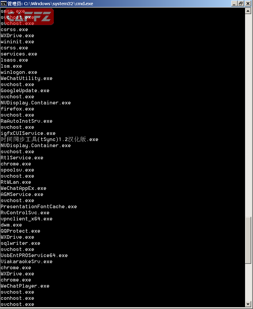列出内存程序。