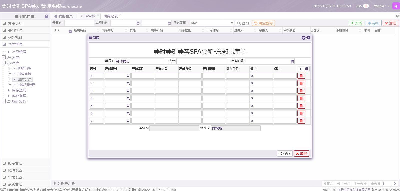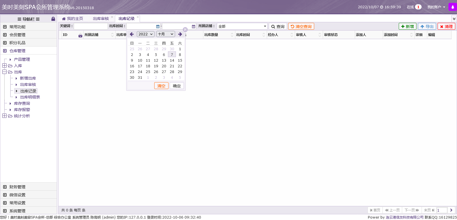 美时美刻SPA会所管理系统7大模块介绍- 第三模块-仓库管理 - 入库记录管理