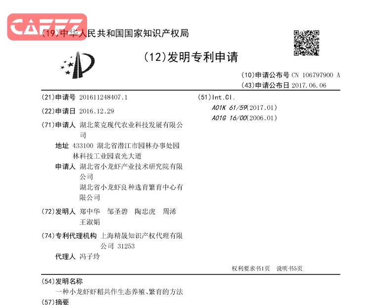 Abstract 本发明提出了一种小龙虾虾稻共作生态养殖、繁育的方法,其特征在于,具体包括以下步骤:(1)稻田整理;(2)稻田清野;(3)移植水草;(4)种虾放养;(5)虾苗管理;(6)虾苗捕捞。本发明3~4月收获一批虾苗,4~5月收获第一批商品虾,8~9月收获第二批商品虾或亲虾,提高了现有技术养殖的局限性,同时利用了生态资源,避免现有方式的产出率低、死亡率高的问题,极大程度上结合生态水稻和龙虾的配合养殖,提高了龙虾养殖的出产率和品质。 Description 一种小龙虾虾稻共作生态养殖、繁育的方法 技术领域 本发明涉及一种小龙虾虾稻共作生态养殖、繁育的方法。 背景技术 小龙虾的繁育分自然增殖和人工繁育,人工繁育包括稻田繁育(稻田半人工繁育和稻田生态繁育)、土池繁育、土池温棚繁育、水泥池繁育和工厂化繁育。稻田繁育、土池繁育、土池温棚繁育主要是在3~4月生产3cm左右大规格虾苗,水泥池繁育和工厂化繁育在每年9~10月生产1~2cm小规格虾苗。从长期的生产实践来看,自然增殖只适合人放天养的粗放养殖模式,不能形成苗种供应;人工繁育无论是稻田半人功繁育、土池人工繁育、还是水泥池和工厂化繁育,都能够生产一定数量的虾苗,但是都各有缺点。稻田半人工繁育和土池繁育操作方便,效果也不错,但稻田半人工繁育捕捞不方便,只适合自繁自养,不能形成集中批量供应市场,土池繁育虾苗上市时间迟;土池温棚、水泥池和工厂化繁育虽然可相对集中批量生产小龙虾苗,但土池温棚基础设施投资太大,水泥池和工厂化繁育不仅基础设施投资大而且亲虾死亡率高,生产成本很高,这都限制了虾苗生产规模发展。 潜江是全国率先开展小龙虾苗种人工繁育并取得成功的县市。2005年湖北莱克水产食品股份有限公司依托市水产部门与湖北省水产科学研究所合作,在龙湾渔场小龙虾良种繁育基地成功进行了小龙虾的人工繁殖研究与试验,年繁育虾苗1000万尾,一举填补了中国小龙虾人工繁殖的空白。在此基础上,先后开展了稻田半人工繁育、土池人工繁育等试验,并相继取得了成功。2008年--2012年,湖北莱克水产食品股份有限公司多方筹资,投资近亿元,陆续建成5000平方米的工厂化繁育车间、6000平方米的水泥繁育池、4500平方米的繁育温棚,可年繁育虾苗5亿尾的全国规模最大的小龙虾工厂化育苗基地。但是,由于硬件设施投资太大、亲虾死亡率太高、虾苗批量太小,无法满足市场的迫切需求。现有的虾稻共作,其养殖方式较为简单,纯粹只是两者结合养殖,并没有解决养殖过程中的各种问题,因此养殖效率等受到极大的限制。如何打破小龙虾繁育的瓶颈,探索高品质、既经济、又能批量生产、集中供应的繁育方式,全国各地各级专家和技术人员都在不断探索。 发明内容 本发明提出一种小龙虾虾稻共作生态养殖、繁育的方法,从稻田改造、水草种植、营养投喂、水位调控、水质调节等方面进行技术创新,促进其自然交配、产卵孵化,获得虾苗。 本发明的技术方案是这样实现的: 一种小龙虾虾稻共作生态养殖、繁育的方法,具体包括以下步骤: (1)稻田整理:将稻田以40亩为一个单,沿田埂外缘开挖环形沟,堤脚与沟中间留2米宽的平台,沟宽4米左右,沟深1.5米左右,田埂应高于田面0.6~0.8米,顶部宽2~3米,田埂上设防逃网; (2)稻田清野:用茶粕30kg/667m3浸泡后全池泼洒或用鱼藤酮中的一种消毒; (3)移植水草:在稻田和虾沟种植伊乐藻,在10月至翌年元月,将伊乐藻或菹草草茎切成15厘米,10株为一束,插入泥中,行距约5~8米。待草成活,逐渐加水,以浸没水草末端10厘米即可; (4)种虾放养:8~9月份引进种虾,挑选颜色暗红或深红、有光泽、体表光滑无附着物,雌雄个体在35g以上,附肢齐全、无病无伤、体格健壮、活动能力强的优质种虾,每亩投放50公斤,老养殖稻田则只需补投亲本10公斤,雌雄比例为3:1; (5)虾苗管理: 水质管理:水质管理遵循“3月份以前保持肥水,3月份以后保持清水”的原则,10月中稻收割后,由于稻田中已存有大量稻草,腐烂后的稻草为小龙虾提供了足量的有机肥源,不需施肥,11月份至次年2月份,遵循“以基肥为主、以追肥为辅”的原则适时适量施肥; 水位的调控:水位调控遵循“浅—深—浅”的原则,即10~11月水位要浅,保持田面水位0.2~0.3米;12月~次年2月水位要加深,保持水位0.4~0.6米;3月以后要降低水位,保持水位0.3~0.4米; 饲料投喂:当水温低于12℃以下时,可不投喂饲料;翌年3月份,当水温上升到16℃以上开始喂食; (6)虾苗捕捞:3~4月将虾苗捕捞上市,同时将产卵繁殖后的亲虾一并捕捞上市,4~5月成虾收获时是捕大留小,同时选购健康的幼虾补投,8-9月第二次捕捞时前期是捕大留小,后期是捕小留大,大规格的虾留下作为下年苗种繁育的种虾。 优选地,步骤(1)中,进、排水口分别位于稻田两端,进水渠道建在稻田一端的田埂上,进水口用20目的长型网袋过滤进水,防止敌害生物随水流进入稻田,排水口建在稻田另一端环形沟的低处。 优选地,步骤(2)中用2.5%的鱼藤酮乳油1300ml或7.5%鱼藤酮乳油700ml中一种,用时将鱼藤乳油加水稀释10~15倍,装入喷雾器中全池喷洒。 优选地,步骤(5)中基肥主要是施用经过发酵的有机粪肥100公斤/亩左右,以后每月追施一次经过发酵的粪肥50公斤/亩左右,次年3月份以后,应保持水质清新。 优选地,步骤(5)中还包括: 清除青苔:经过一个冬季,进入3月要进行清除,方法是用生石灰化水趁热泼洒,用量