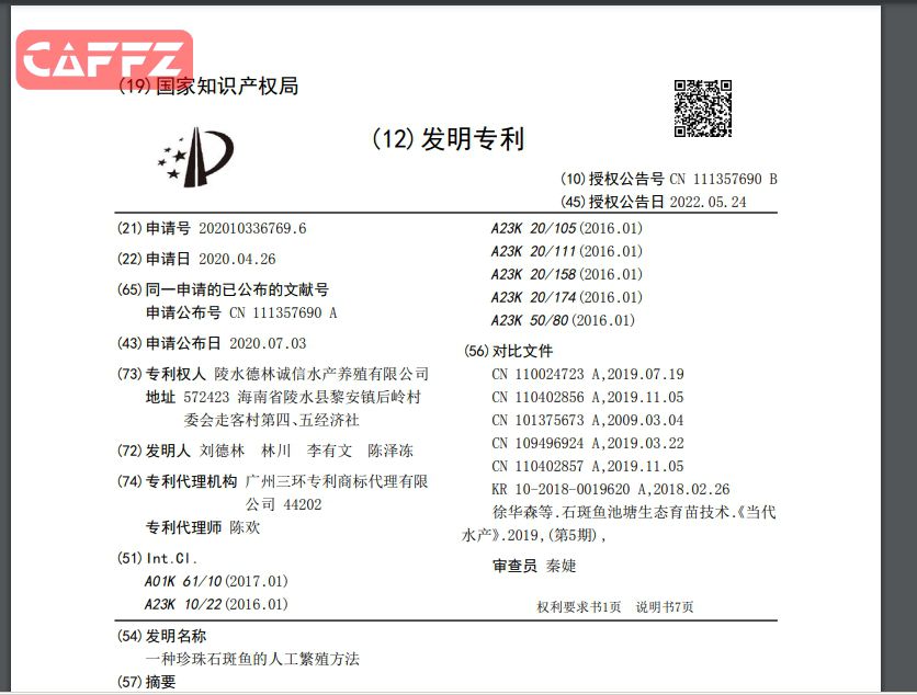 Title: 一种珍珠石斑鱼的人工繁殖方法